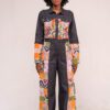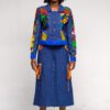 This SANYU jacket is a tribute to African beauty, featuring textured patchwork on the sleeves and pockets. The back showcases an applique face with intricate beadwork, capturing strength and cultural pride in a modern design.
