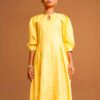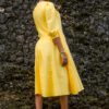 Mustard linen-silk pleated midi dress